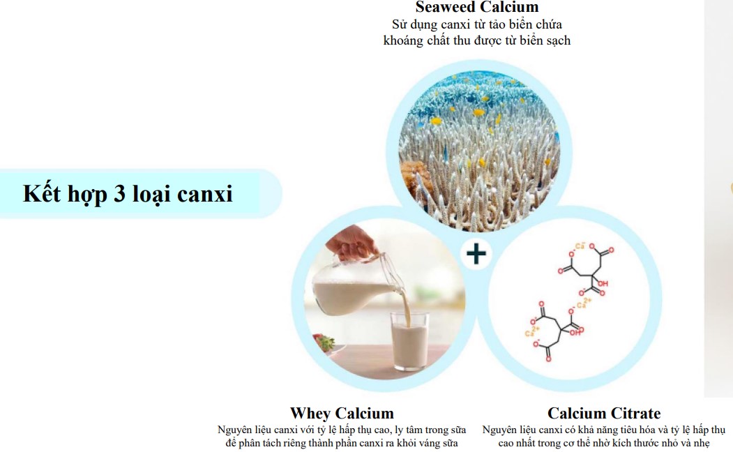 Sử dụng công thức 3 loại canxi phức hợp mới từ phòng nghiên cứu General Bio gồm canxi từ rong biển, canxi từ sữa gầy và canxi citrite theo tỉ lệ tối ưu. Được thiết kế để phù hợp với mọi loại thể chất, từ đó tỉ lệ hấp thụ và tỉ lệ sử dụng trong cơ thể được nâng cao hơn rất nhiều